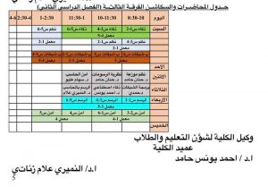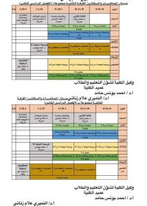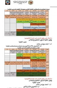 الجداول الدراسية لطلاب الكلية الفصل الدراسى الثانى 2021-2022