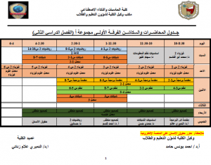 جدول المحاضرات والسكاشن الفرقة الأولى مجموعة (أ) للفصل الدراسى الثانى 2021-2022